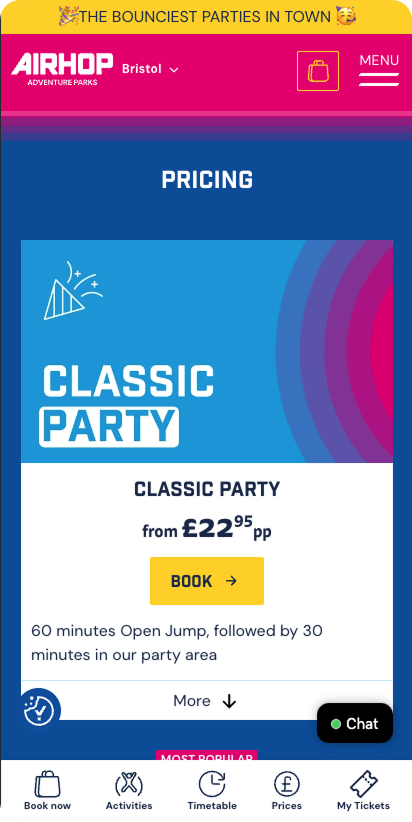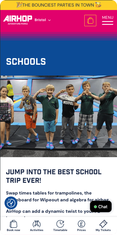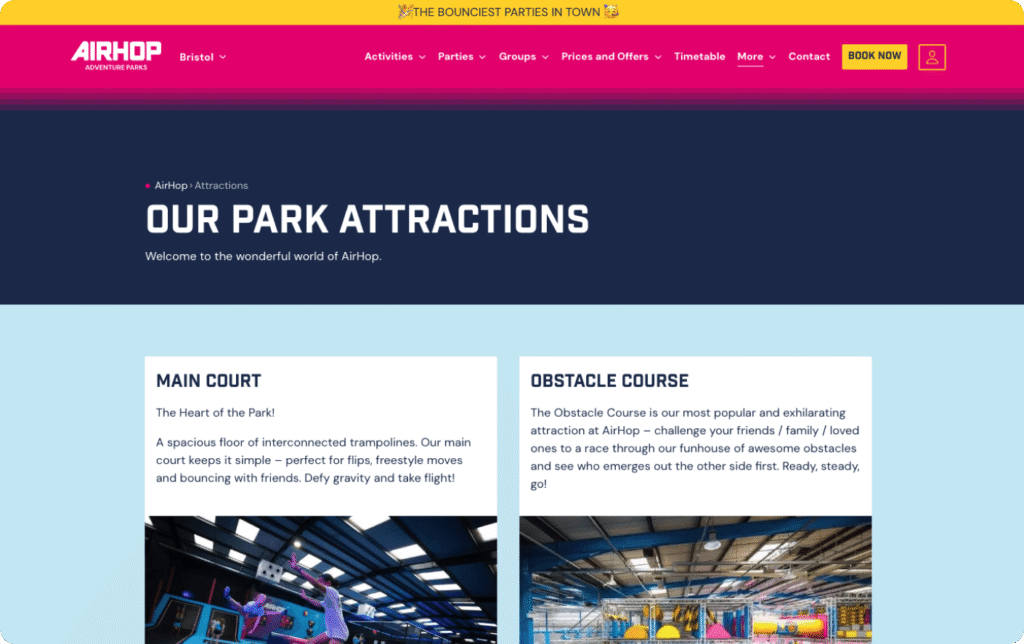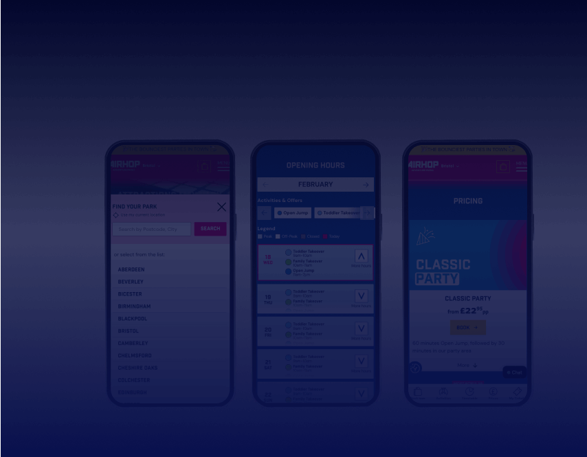 AirHop.co.uk operates indoor trampoline parks across the UK. Alongside AirHop, they also run Jump Inc and Go Jump In – three brands, multiple locations, high traffic, heavy seasonal spikes.