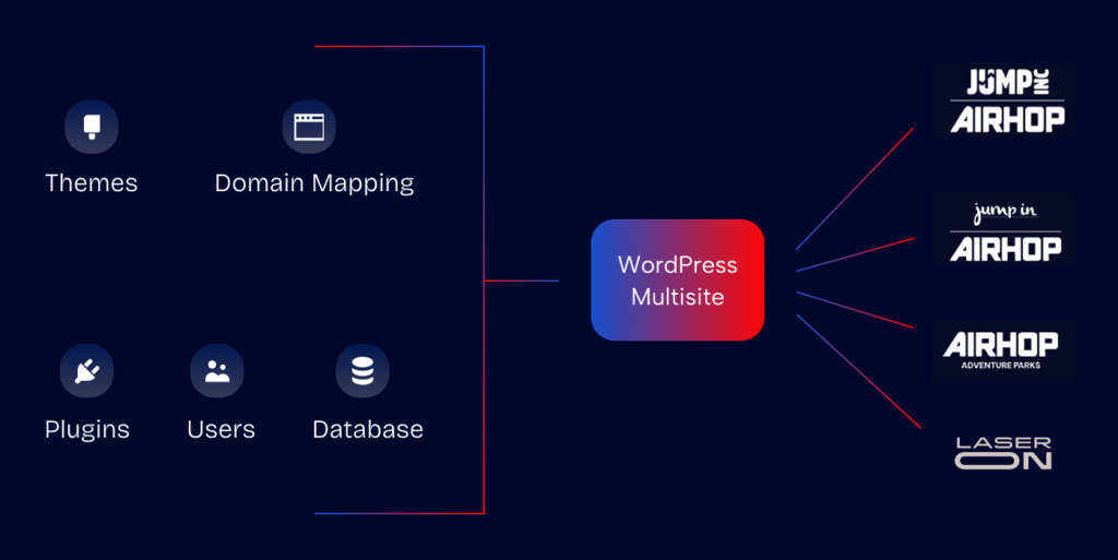 Instead of maintaining three separate installations, we consolidated everything into a WordPress multisite network.