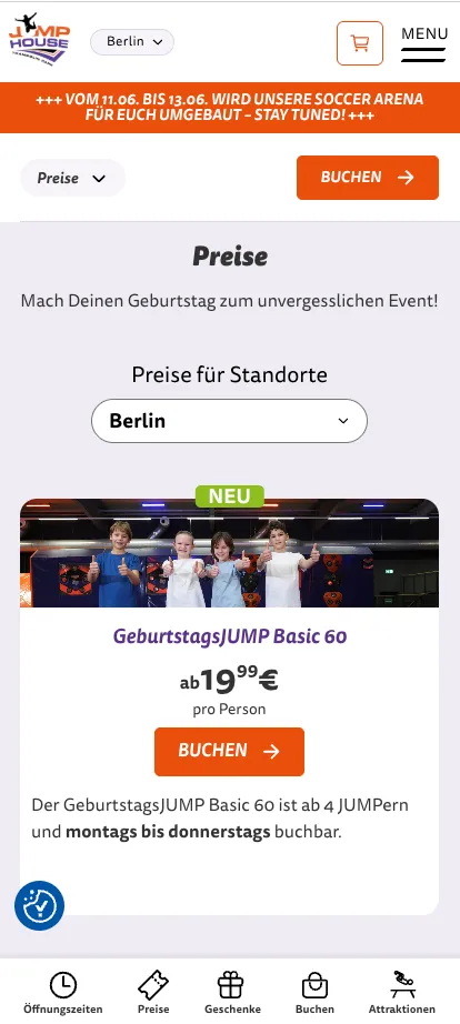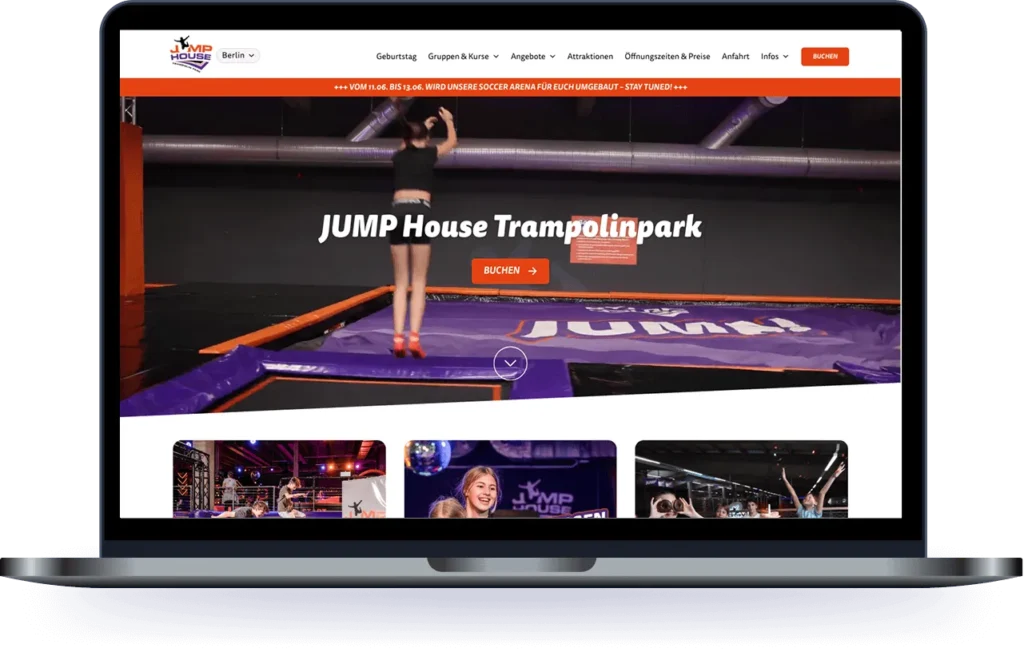 JUMP House is one of Germany’s leading indoor trampoline park brands, operating multiple locations nationwide. With thousands of visitors every week and a fast-moving marketing team, their website plays a critical role in discovery, bookings, and brand experience.