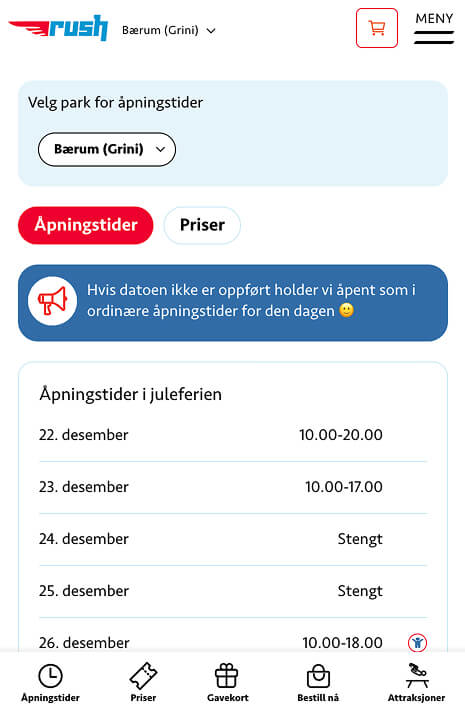 As part of the platform build, we integrated the website with Roller, the checkout and booking system used across Rush locations.
